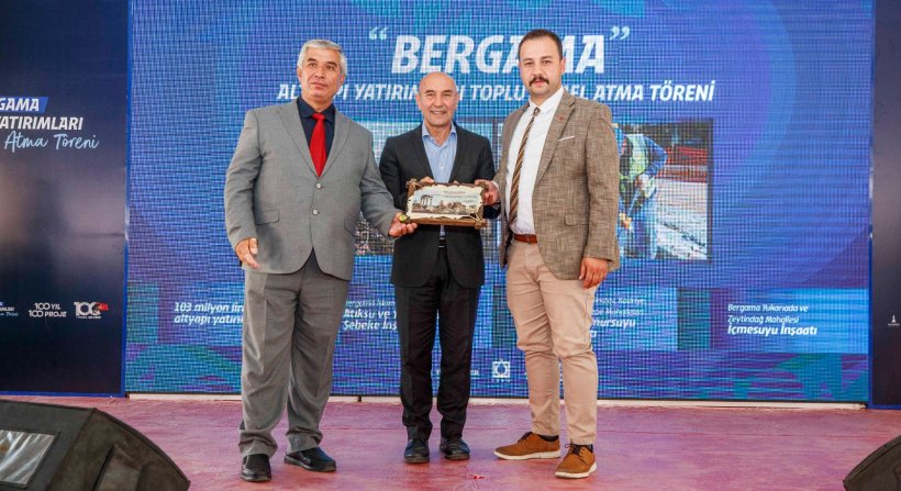 İzmir Büyükşehir Belediyesi İZSU Genel Müdürlüğü’nün "Cumhuriyetin 100. Yılında 100 Proje" başlıklı yatırım programı kapsamında Bergama’da üç önemli yatırımın temeli atıldı. 103 milyon liraya mal olacak 21 kilometrelik atık su ve yağmursuyu hattı ile 28 kilometrelik içme suyu hattının İslamsaray Mahallesi'nde yapılan temel atma törenine İzmir Büyükşehir Belediye Başkanı Tunç Soyer, İzmir Büyükşehir Belediyesi Başkan Vekili Mustafa Özuslu, Bergama Belediye Başkanı Hakan Koştu, Dikili Belediye Başkanı Adil Kırgöz, Foça Belediye Başkanı Fatih Gürbüz, İZSU Genel Müdürü Ali Hıdır Köseoğlu, siyasi partilerin temsilcileri, muhtarlar ve yurttaşlar katıldı.