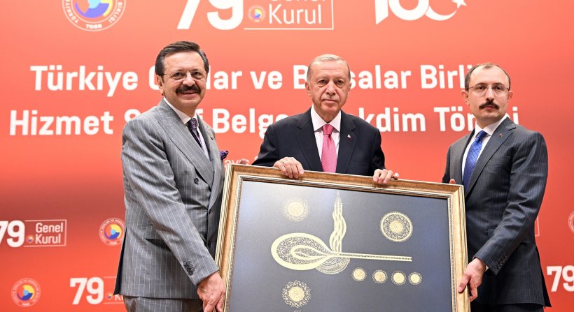 Ardından Cumhurbaşkanı Recep Tayyip Erdoğan'ın da katılımıyla TOBB 79. Genel Kurulu kapsamında Birlik merkezinde Hizmet Şeref Belgesi Takdim Töreni gerçekleştirildi.
