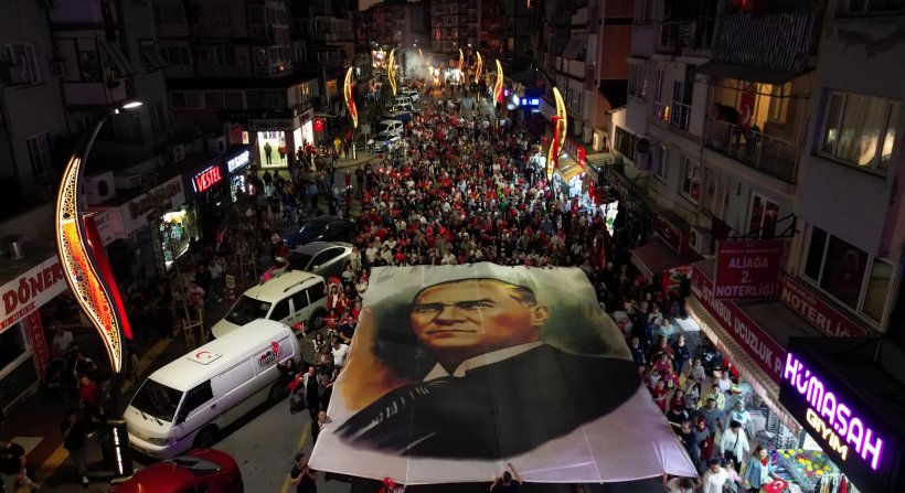 Resmi programın ardından kutlamalar akşam Aliağa Belediyesi öncülüğünde organize edilecek Fener Alayı ve korteji ile devam edecek. Saat 19.00’da Aliağa Belediyesi Spor Salonu önünden başlayacak fener alayında Aliağalılar, bando ve marşlar eşliğinde, Cumhuriyet Meydanı’na yürüyecek. Cumhuriyet Bayramı kutlamaları Cumhuriyet Meydanı’nda saat 20.00’de Aliağalı gençlerden oluşan ‘Topraksız Elektrik’ grubunun konseriyle son bulacak.