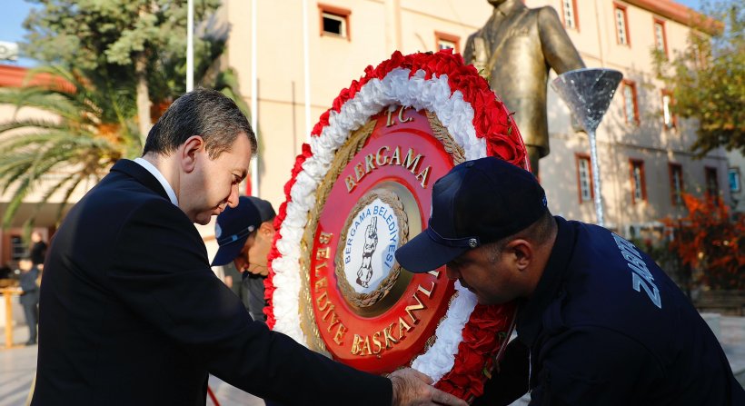 Türkiye Cumhuriyeti'ni milletiyle birlikte küllerinden yeniden kuran Gazi Mustafa Kemal Atatürk'ü, 85. vefat yıl dönümünde bir kez daha sevgi, saygı ve rahmetle andıklarını belirten Bergama Belediye Başkanı Hakan Koştu, "Cumhuriyetimizin Kurucusu Gazi Mustafa Kemal Atatürk’ü sevgi saygı ve özlemle anıyoruz. Kendisini milletine adamış, bağımsızlık yolunda karşısına çıkan güçlüklere karşı koymuş, yaşamına sığdırdığı büyük başarılarla hem milletimize hem dünyaya örnek olmuştur. Cumhuriyetimizin ikinci 100 yılında bizlere emanet ettiği güzel ülkemizi muasır medeniyetler seviyesine çıkarmak için çok çalışıyoruz. Güçlü ve büyük Türkiye'mizin temellerini azim ve kararlılıkla atan Gazi Mustafa Kemal Atatürk nasıl her alanda milletimizin yücelmesi için çalışmışsa bizim de ülkemizi yüceltip müreffeh yarınlara taşımak borcumuzdur. Bu duygu ve düşüncelerle Gazi Mustafa Kemal Atatürk'ümüzü ve vatanımız için can veren şehitlerimizi, gazilerimizi rahmet, minnet ve saygı ile anıyorum" dedi.