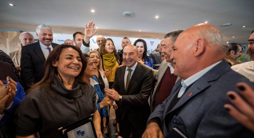 İzmir Büyükşehir Belediye Başkanı Tunç Soyer, İzmir’in kurtuluşunun 100. yıl dönümü için hazırlanan “Kurtuluştan Demokrasiye İzmir Muhtarlar Müzikali”nde oynayan 100 muhtarla bir araya geldi. Başkan Tunç Soyer, Nefes Restoran’daki buluşmada muhtarlara ve müzikalin eğitmenlerine teşekkür plaketi verdi. Muhtarlar “En büyük başkan Tunç Başkan”, “İşte Başkan gerçek Başkan” sloganları attı.