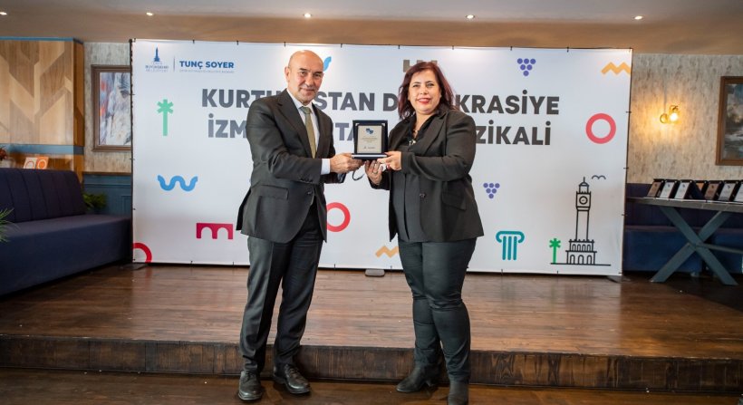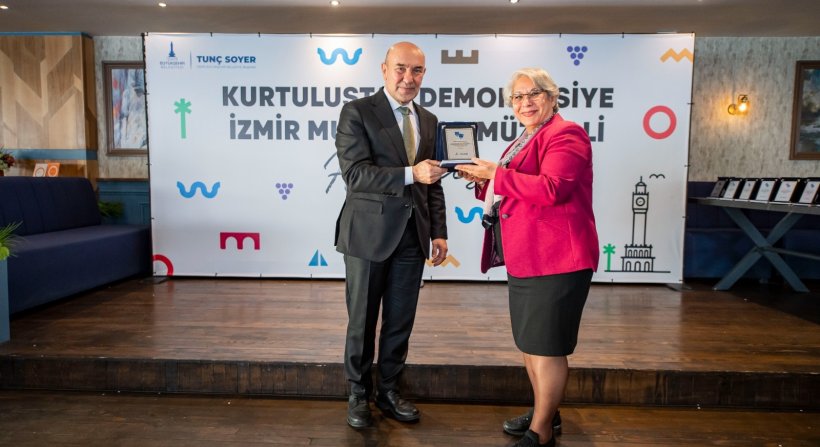 İzmir'in kurtuluşunun 100. yıl dönümü için hayatlarında ilk defa tiyatro sahnesine çıkan 100 muhtar, İzmir Büyükşehir Belediye Başkanı Tunç Soyer'den teşekkür plaketi aldı.