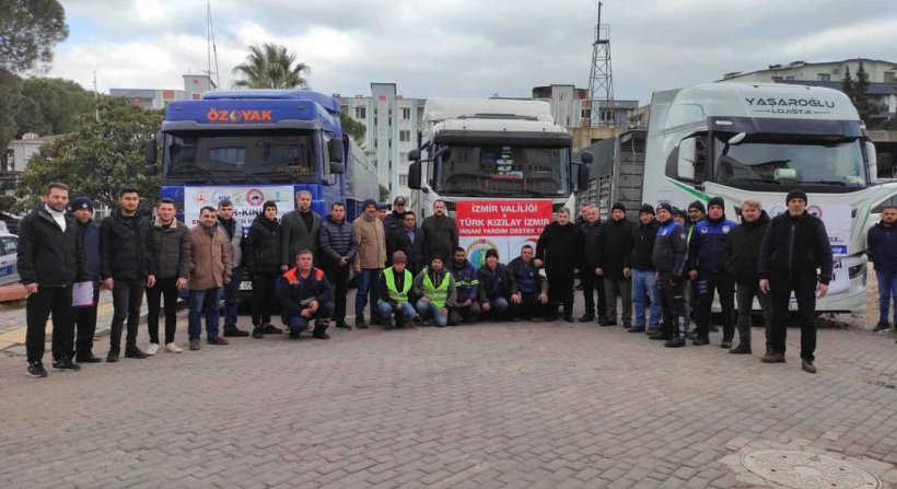 Depremzedelerin yaralarını sarmak için el ele veren İzmir Valiliği ve AFAD koordinesinde, Kınık Kaymakamlığı ve Kınık Belediyesi işbirliği ile Kınıklılar tarafından toplanan yardımların ilk kısmı, dokuz tır ile deprem bölgelerine ulaştırılmak üzere yola çıktı.