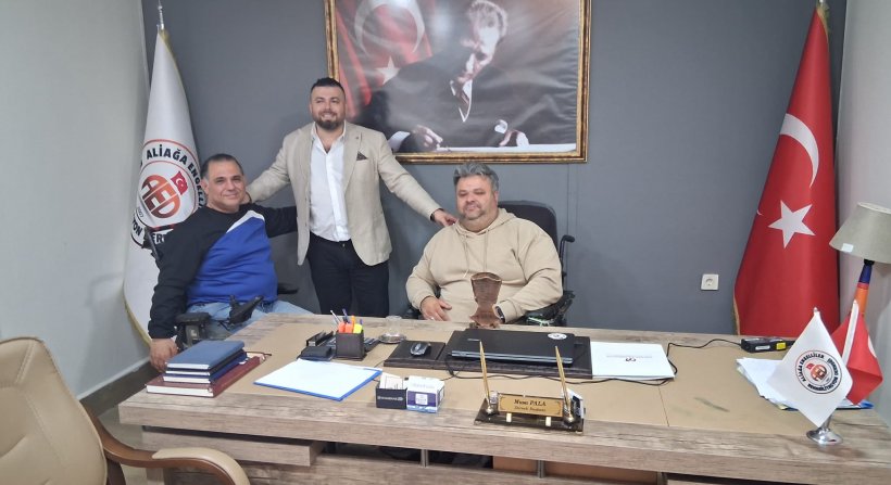 Aliağa Esnaf ve Sanatkarlar Odası Başkan Adayı Ozan Yıldızbaş Aliağa Engelliler Derneği Başkanı Musa Pala ve Başkan Yardımcısı Aytaç Bayar'ı ziyaretinde Engelli vatandaşlara sosyal statü kazandırmanın faydalarını, yapılabilecekleri ve Engellilerin hayatlarını kolaylaştırma yolunda neler yapılabilinir sohbeti yaparak: