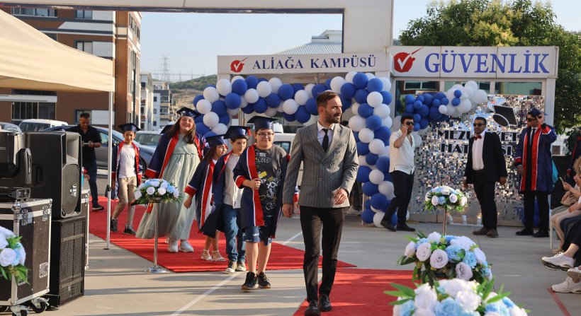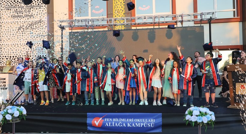 Aliağa Fen Bilimleri Koleji, 2024-2025 eğitim öğretim yılını, görkemli bir mezuniyet töreniyle taçlandırdı. Okul bahçesinde düzenlenen, büyük bir titizlikle planlanmış organizasyonda; ana sınıfı, 4. sınıf, 8. sınıf ve 12. sınıf öğrencileri, öğretmenleri ve ailelerinin gurur dolu bakışları arasında mezuniyet belgelerini aldı.