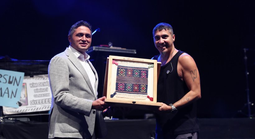 Konserin bir bölümünde sahneye davet edilen Aliağa Belediye Başkanı Serkan Acar, MaNga ve Dedublüman’a Aliağa Sanat Günleri’ne katılımlarından dolayı teşekkür ederek, kendilerine Aliağalı üretici kadınlar tarafından el emeği ile üretilen, Aliağa yöresine özgü, tarihi ‘Helvacı Kilimi’ hediye etti. En büyük teşekkürü konser alanını dolduran sanatseverlere eden Başkan Serkan Acar, “Tüm etkinliklerimizde yanımızda olan, bizleri hiçbir zaman yalnız bırakmayan, her şeyin en iyisine layık Aliağalılara sevgi ve saygılarımı sunuyorum. İyi ki varsınız” dedi.