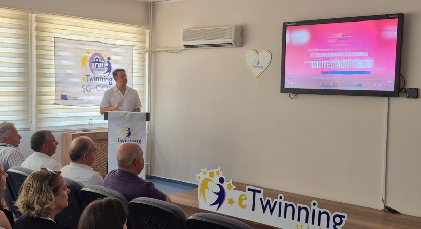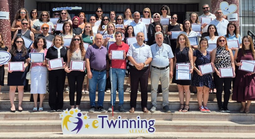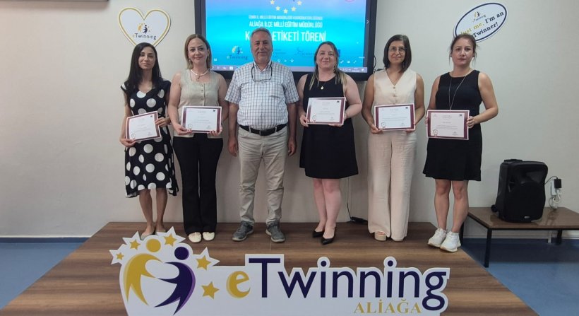 İzmir İl Milli Eğitim Müdürlüğü koordinesinde tüm ilçelerle eş zamanlı olarak düzenlenen eTwinning Kalite Etiketi Töreni, Aliağa İlçe Milli Eğitim Müdürlüğü Konferans Salonu'nda yoğun katılımla gerçekleştirildi.