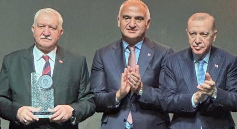 Beştepe Millet Kongre ve Kültür Merkezi’nde düzenlenen ödül töreninde İbrahim Alimoğlu’na ödülünü Cumhurbaşkanı Recep Tayyip Erdoğan takdim etti.