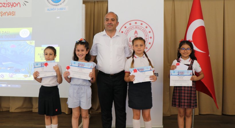 Şiir dalında 3.’lük ödülü Şehit Murat Coşkun Ortaokulu 8. Sınıf öğrencisi İpek Berktaş’a, kompozisyon dalında 3.’lük ödülü Aliağa Şehit Gökhan Çakır Anadolu Lisesi 10. Sınıf öğrencisi Elif Akçay’a, Resim dalında 3.’lük ödülü ise Adalet İlkokulu 4. Sınıf öğrencisi Kerem Mert Şenocak’a verildi. Öğrencilere ödülleri Aliağa Belediye Başkanı Serkan Acar tarafından verildi.