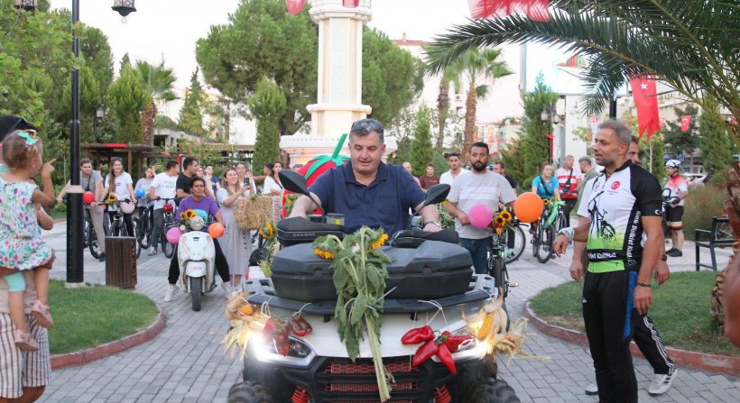 Kınık'ta Hasat ettikleri ürünlerle bisikletlerini süslediler