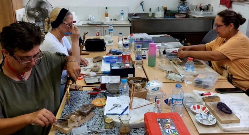 Kimi Broş kimi kolye kimi yüzük yapmakla meşgul. Gümüşler, ibrişimler, bakırlar önlerinde kulakları hocalarında tasarladıkları takıyı imal ediyorlar. 8 Mart Günü tüm Aliağalıları sergimize bekliyoruz diyorlar. Bu defa Aliağa merkezde planlanan sergi de aslında onları heyecanlandırıyor. Daha çok misafir daha çok ziyaretçi gelecek ve bizim ürettiğimiz eserlerimizi daha çok kişinin görmesi gerçekleşecek diye seviniyorlar.