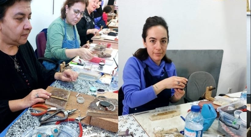 Bu atölyelerin birisi olan "Kuyumculuk teknolojileri" ne atölyelerin en hareketlisi diyebiliriz. Burada Öğretmenleri Nihal Mukaddes Yapıcı gözetiminde hiç durmadan çalışan kursiyerler ellerindeki birbirinden özel eserleri 8 Mart Dünya Kadınlar Gününe yetiştirmeye çalışıyorlar.