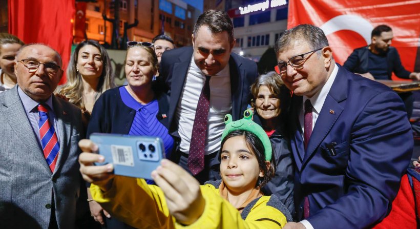 Programda, Aliağalı yurttaşlarla yakından ilgilenen, çocuklarla fotoğraf çektiren Başkan Tugay, 13 yaşındaki Kaan Uçan'ın isteğini kırmayarak, yakasındaki Türk Bayrağı rozetini, hatıra olarak kendisine verdi.