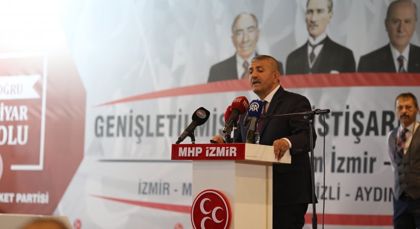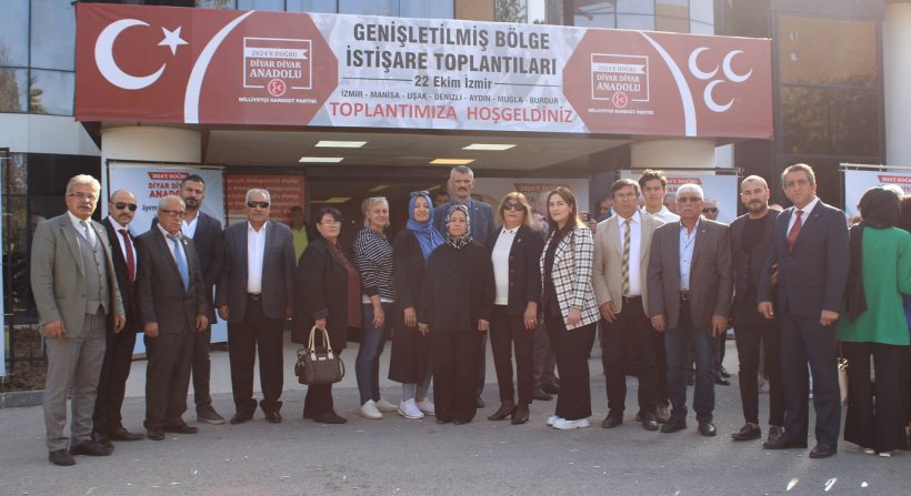 Milliyetçi Hareket Partisi (MHP) Genel Başkanı Devlet Bahçeli talimatlarıyla gerçekleştirilen “Diyar Diyar Anadolu Genişletilmiş Bölge İstişare Toplantısı” İzmir İl Başkanlığının ev sahipliğinde Balçova Termal Tesisleri Kardelen Salonu’nda gerçekleştirildi. Manisa, Aydın, Denizli, Uşak, Muğla ve Burdur İl Teşkilatlarının katılımıyla gerçekleştirilen toplantıya Genel Başkan Yardımcısı Fethi Yıldız Başkalık etti. MHP’nin TBMM Grup Başkan Vekili ve Manisa Milletvekili Erkan Akçay, Genel Sekreter Yardımcısı ve İzmir Milletvekili Tamer Osmanağaoğlu ve Genel Sekreter Yardımcısı Bahadır Bumin Özarslan da toplantı divanında yer alan isimlerdi. Toplantının açılış konuşmasını İzmir İl Başkanı Veysel Şahin yaparken Manisa Büyükşehir Belediye Başkanı Cengiz Ergün partililere hitap edenler arasındaydı.