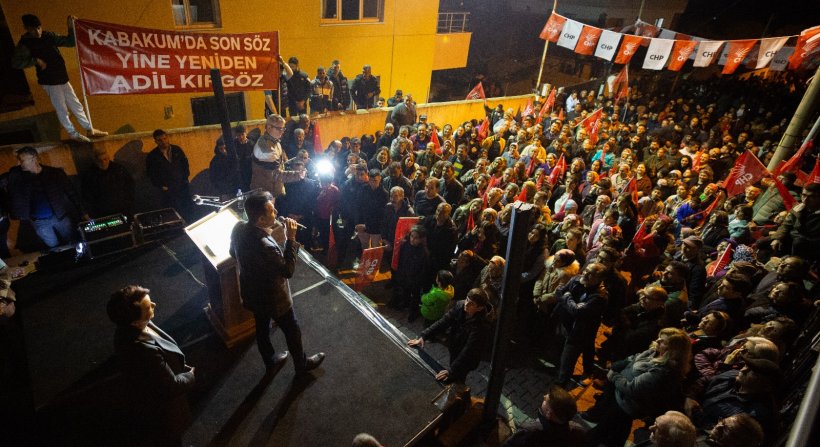 Dikili Belediye Başkanı ve Cumhuriyet Halk Partisi yeni dönem Belediye Başkan Adayı Adil Kırgöz eşi Nesrin Kırgöz'ün baba ocağı Kabakum Mahallesi'nde coşkuyla karşılandı.