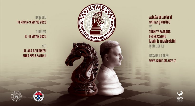 Aliağa Belediyesi’nin bu yıl 19 Mayıs Atatürk’ü Anma Gençlik ve Spor Bayramı etkinlikleri kapsamında düzenleyeceği ‘KYME Satranç Turnuvası’ 10-11 Mayıs tarihlerinde gerçekleştirilecek. Turnuvaya katılmak isteyen satranç tutkunları 18 Nisan – 9 Mayıs tarihlerinde www.izmir.tsf.org.tr adresinden başvurularını yapabilecek.