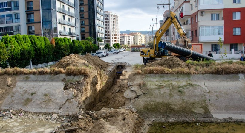 Menemen’e 2019 yılından bu yana yaklaşık 90 milyon liralık yatırım yaparak ilçenin altyapısını güçlendiren İZSU Genel Müdürlüğü, şiddetli yağışlarda yaşanabilecek olumsuzlukların önüne geçmek için de yağmursuyu hattı imalatlarını sürdürüyor.