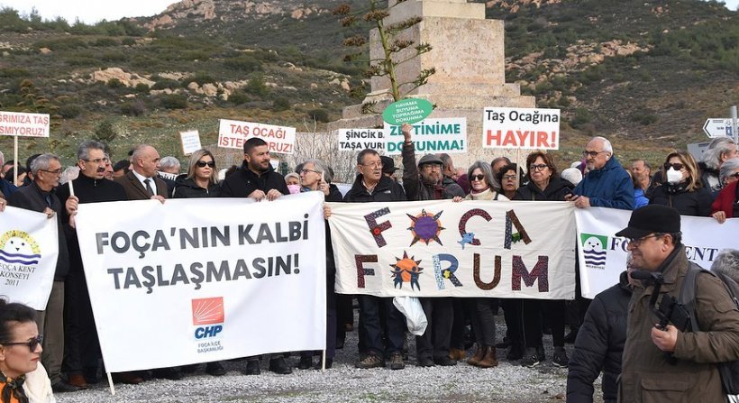 Foça’da kurulmak istenen Taş Ocağı projesinin iptali için 21 Ocak Cumartesi günü Pers Mezar Anıtı ve 2 Şubat Perşembe günü İzmir Valiliği Çevre, Şehircilik ve İklim Değişikliği İl Müdürlüğü binası önünde basın açıklamaları yapılmıştı. Foça’da Doğa ve Tarih Talanına Hayır Platformu öncülüğünde “Doğana, Tarihine, Zeytinine Sahip Çık” isimli imza kampanyasında toplanan 5 bin imza Çevre, Şehircilik ve İklim Değişikliği Bakanlığına iletilmişti.