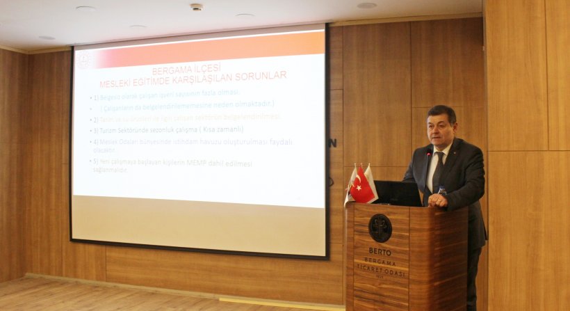 Bergama Ticaret Odası'nda düzenlenen "Devlet Destekleri ve Teşvikler" bilgilendirme seminerinde İşveren, İstihdam, İhracat, Girişimcilik Destekleri ile birlikte Mesleki Eğitimde Ustalık Telafi Programı hakkında detaylı bilgiler verildi.