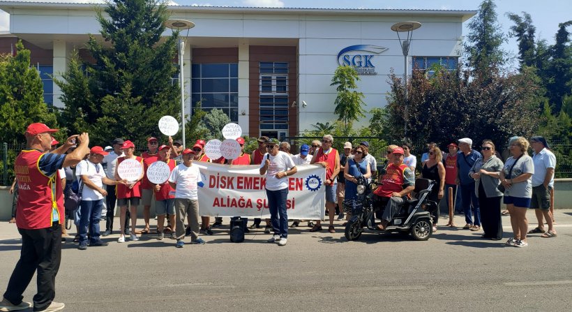DİSK EMEKLİ-SEN ALİAĞA ŞUBESİ TARAFINDAN BU GÜN ALİAĞA SGK ÖNÜNDE BASINA VE KAMUOYUNA "YAPILAN EMEKLİ MAAŞLARI ZAMLARI" İLE İLGİLİ BASIN AÇIKLAMASI YAPILDI