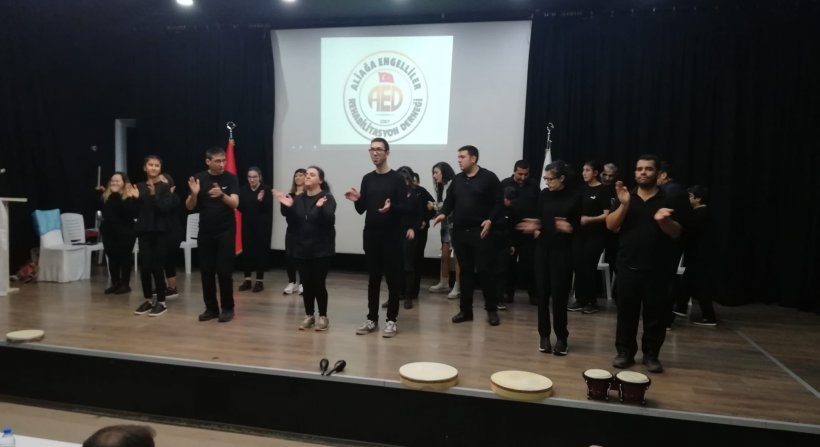 Aliağa Belediyesi Meclis Salonunda 03.12.2023 Pazar Günü saat 14.30 da başlayan Engelli öğrenciler ve öğretmenlerinin desteği ile hazırlanan Tiyatro, Şiir, Ritim ve çeşitli gösterilerinde programa katılanlar hep birlikte güldüler ve alkışlarla seslendirilen melodilere eşlik ettiler.
