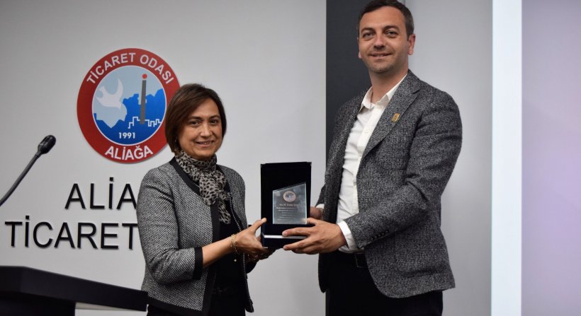 Törende Aliağa Ticaret Odası Meclis Eski Başkanları Ö. Turgut Oğuz, Nazmi Kaya, Ömer Ertürk ve Adnan Saka plaketlerini alırken, merhum M. Ender Özer adına eşi Hilal Özer teslim aldı. Geçirdiği sağlık operasyonu dolayısıyla törene katılamayan ALTO Meclis Eski Başkanı Osman Uslu’ya plaketi daha sonra teslim edilecek.