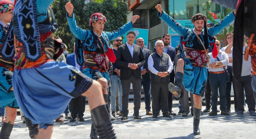 Atatürk’ün 13 Nisan 1934’te Aliağa’ya gelişinin 90.yıl dönümü etkinliği, yapılan konuşmaların ardından Aliağa Belediyesi Halk Oyunları Ekibinin Zeybek gösterisiyle son buldu.