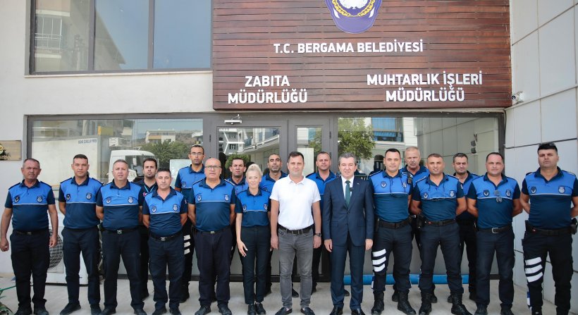 Zabıta Teşkilatının kuruluşunun 197. Yılı münasebetiyle Bergama Belediye Başkanı Hakan Koştu, Bergama Zabıta Müdürlüğü'nü ziyaret etti