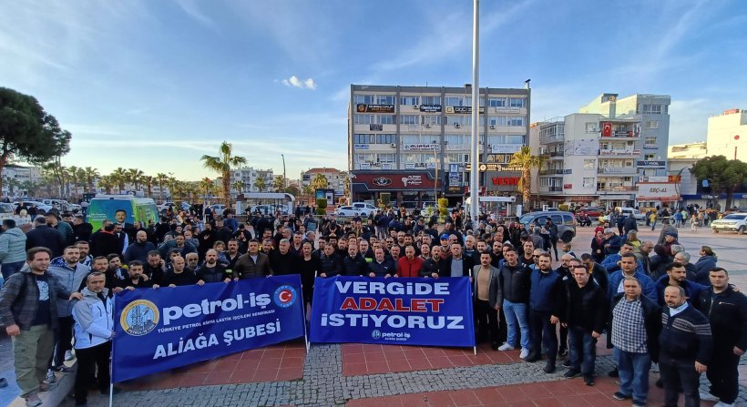 Petrol-iş Sendikası Aliağa Şubesi “Vergide Adalet” ve “Enflasyonla Mücadele” talebiyle bu gün Aliağa Demokrasi Meydanında basın açıklaması gerçekleştirdi.