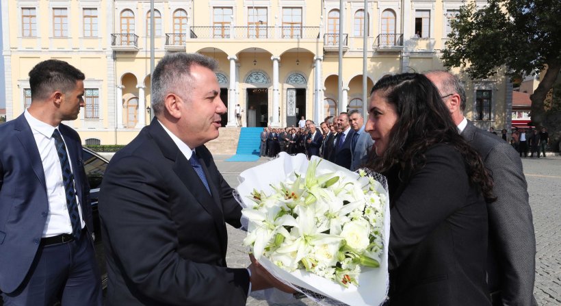 İzmir Hükümet Konağı önünde tören mangasını selamladıktan sonra il protokolü ve valilik personelince karşılanan Vali Elban, ardından valilik makamına geçti.