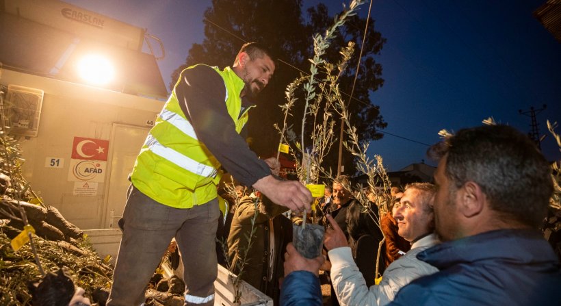 İftar sonrasında yurttaşlara 3 bin zeytin fidanı dağıtıldı. Bölgede dağıtılacak 50 bin zeytin fidanı ile birlikte bu sayı 53 bini bulacak.