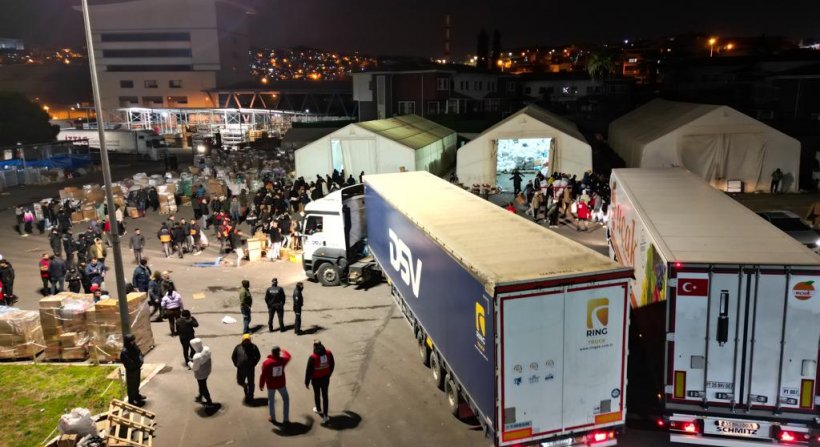 İzmir Valiliği ve Türk Kızılay İzmir İl Şubesi ortak bağış kampanyası kapsamında Ege Afet Bölge Merkezi'nde toplanan yardımları taşıyan tırlar, deprem bölgelerine doğru hareket etti.