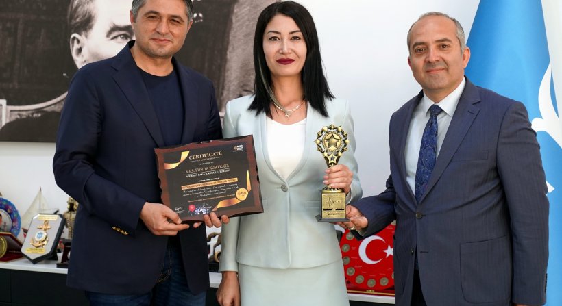 AKS Global Education Awards (Küresel Eğitim Ödülleri) kapsamında ‘Yılın En İyi Müdür Yardımcısı’ ödülünü Dubai’de düzenlenen törende alan Aliağa Mehmet Saka İlkokulu Müdür Yardımcısı Funda Kurtkaya, Aliağa Belediye Başkanı Serkan Acar’a eğitime verdiği desteklerden ötürü teşekkür ziyaretinde bulundu.