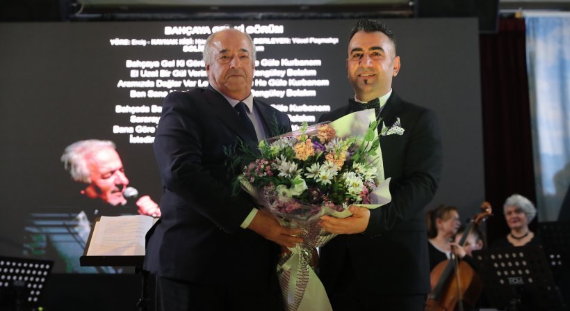 Konserin son bölümlerinde davet üzerine sahneye gelen Aliağa Belediye Başkan Yardımcısı Mesut Öztürk,koristler başta olmak üzere konserin gerçekleşmesinde emeği olan herkese teşekkür ederek koro şefi Ali Hikmet Gökçen'e teşekkür çiçeği takdim etti.