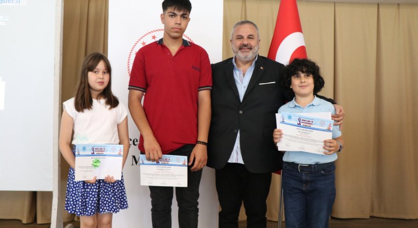 Şiir dalında 3.’lük ödülü Şehit Murat Coşkun Ortaokulu 8. Sınıf öğrencisi İpek Berktaş’a, kompozisyon dalında 3.’lük ödülü Aliağa Şehit Gökhan Çakır Anadolu Lisesi 10. Sınıf öğrencisi Elif Akçay’a, Resim dalında 3.’lük ödülü ise Adalet İlkokulu 4. Sınıf öğrencisi Kerem Mert Şenocak’a verildi. Öğrencilere ödülleri Aliağa Belediye Başkanı Serkan Acar tarafından verildi.
