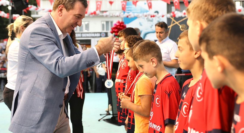 Lig Bergama adı ile düzenlenen turnuvada ter döken, geleceğin sporcuları olmaya aday gençler, düzenlenen törende madalyalarını Başkan Koştu’nun elinden aldılar. İlçede bulunan okullarda bir yandan eğitim ve öğretimlerini gören bir yandan da Lig Bergama Turnuvası’na katılan öğrenciler, Cumhuriyet Meydanı’nda düzenlenen törende vatandaşlardan büyük alkış aldılar.