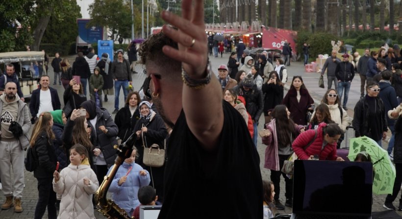 İzmir Büyükşehir Belediyesi tarafından kentte ilk kez düzenlenen Yeni Yıl Festivali sürüyor. Kültürpark’ta 31 Aralık’a kadar devam edecek coşku dolu festivalde alışveriş ve yiyecek stantlarının yanı sıra düzenlenen etkinlikler de ilgi görüyor. Pazar günü saksafon ve elektronik müzik sanatçısı Fuat Sunay İzmirlilere coşku dolu anlar yaşattı.