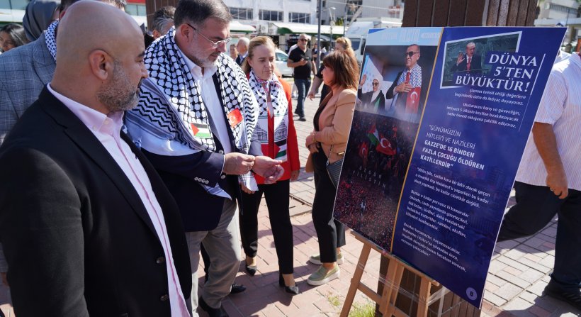 AK Parti Genel Merkez İnsan Hakları Başkanlığı tarafından 81 ilde basın toplantıları düzenlendi. AK Parti İzmir İl Başkanı Bilal Saygılı, AK Parti İzmir İnsan Haklar Başkanlığı’nın Konak Meydanı’nda düzenlediği ‘Filistin’ konulu resim sergisini gezdikten sonra eş zamanlı düzenlenen ortak basın metnini okudu. AK Parti İzmir İl Başkanı Bilal Saygılı, ‘’Bugün, İsrail'in Filistin'e yönelik başlattığı insanlık dışı saldırının birinci yılında bir araya gelmiş bulunmaktayız. Bu vesileyle, Filistin halkının maruz kaldığı zulmü bir kez daha güçlü bir şekilde kabul etmediğimizi ve Filistin davasını savunmaya devam edeceğimizi tüm dünyaya bir kez daha ilan ediyoruz. İsrail, Gazze Şeridi'ne yönelik başlattığı saldırılar ile Filistinli savunmasız sivilleri hedef almış, uluslararası hukuku hiçe sayarak büyük bir insanık suçuna imza atmıştır. İşlediği soykırım suçunun üzerini örtmek için de 7 Ekim'i bahane etmektedir. Bu noktada çok önemli bir gerçeğin altını çizmek istiyoruz: 7 Ekim'i, meselenin sanki sıfır noktasıymış gibi ele alan bir yaklaşımı kesinlikle kabul etmiyoruz. 7 Ekim esasında İsrail katliam ve soykırım makinasının hız ve şiddetinin daha da artmasıdır. Bir yılın içinde 17 binden fazla çocuk, 11 binden fazla kadın olmak üzere 42 binden fazla masum Filistinli sivil İsrail'in acımasız ve insanlık dışı saldırılarında şehit düştü.’’ dedi.