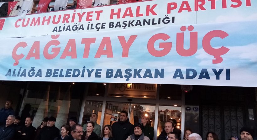 Aliağa İlçe Binası önünde toplanan partililer ve İlçe Yönetim Kurulu Üyeleri ile diğer aday adaylarının da yer aldığı vatandaşlar bu gün adayları Çağatay Güç'ü Aday olarak dinlediler ve desteklerini alkışlarla belli ettiler.