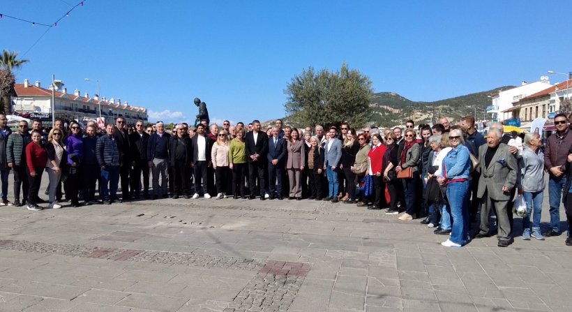 Foça ilçe merkezinde bulunan parti binasında basın açıklamasına Foça Belediye Başkanı Fatih Gürbüz, CHP Belediye Başkan adayı Saniye Bora Fıçı ile partililer katıldı.