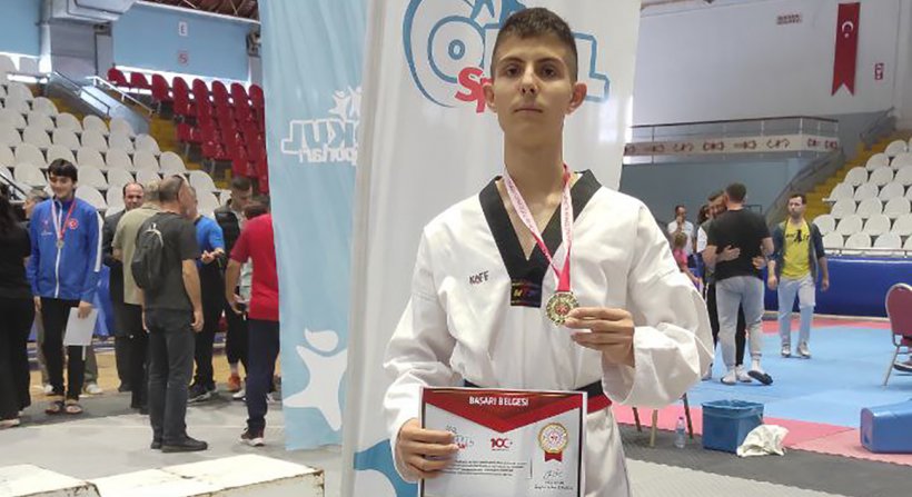Foça Belediyespor Kulübü Taekwondo Şubesi Sporcusu Asrın Yağız Büyükyavuz, yarı final elemelerini altın madalya ile geçti.