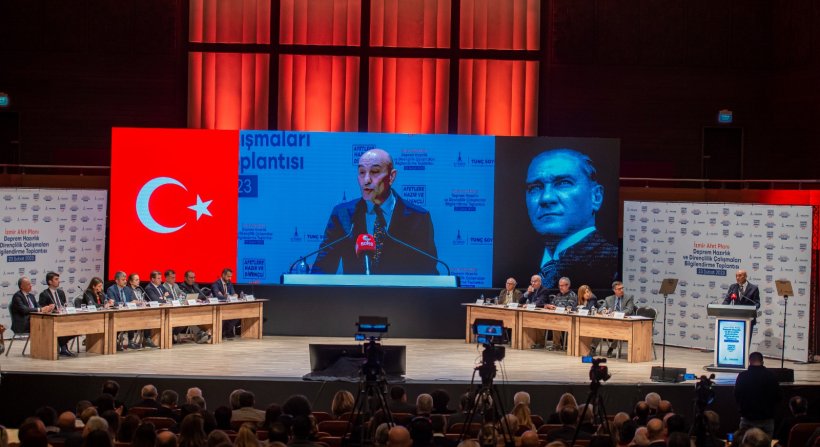 117 kişinin yaşamını yitirdiği 30 Ekim depremin ardından İzmir Büyükşehir Belediyesi’nin dirençli bir kent yaratmak için yaptığı çalışmalar Türkiye’nin önde gelen uzmanlarının katıldığı “İzmir Afet Planı-Deprem Hazırlık ve Dirençlilik Çalışmaları” toplantısı ile kamuoyuna duyuruldu. Ahmed Adnan Saygun Sanat Merkezi'nde düzenlenen toplantıda İzmir Büyükşehir Belediyesi bürokratları, akademisyenler ve meslek odalarının temsilcileri kentte yürütülen çalışmalar hakkında bilgi verdi. Başkan Soyer, sunumların ardından yaptığı değerlendirmede önemli açıklamalarda bulundu.